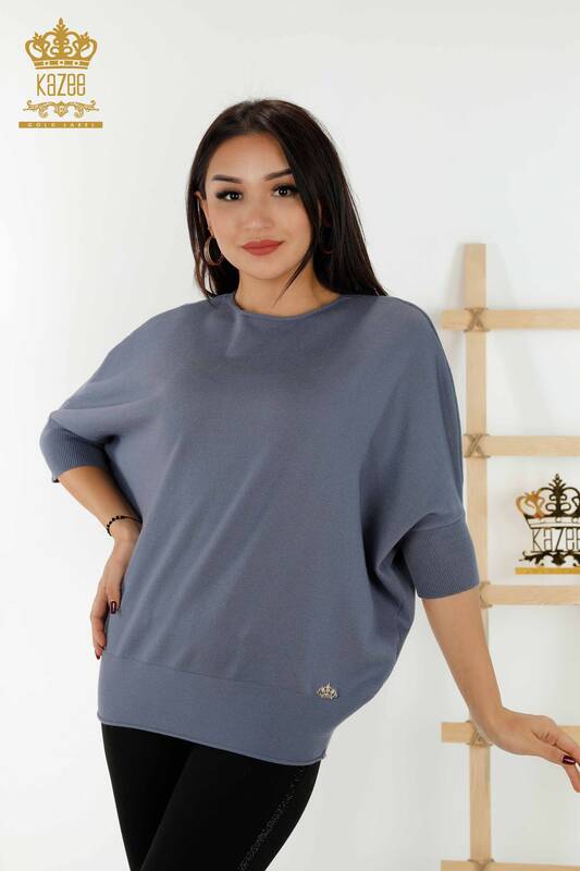 Venta al por mayor Suéter de punto con logo básico para mujer Manga murciélago Indigo abierto - 30241 | kazee