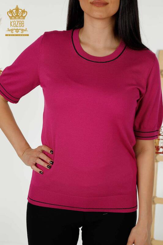 Venta al por mayor Suéter de Punto para Mujer Modelo Americano Básico Fucsia - 30110 | kazee