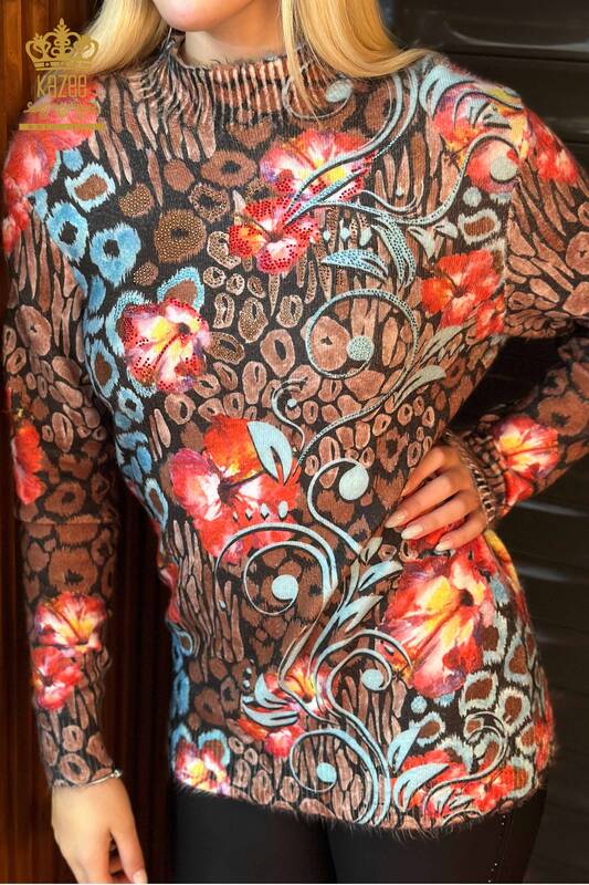 Venta al por mayor Suéter de punto para mujer Estampado digital Piedra bordada Estampado azul - 18971 | kazee