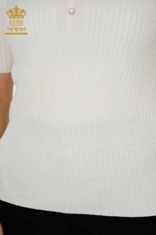Venta al por mayor Suéter de Punto para Mujer Botón Detallado Cuello en V Crudo - 30043 | kazee