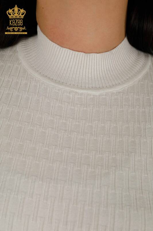 Venta al por mayor Suéter tejido de punto para mujer con cuello levantado color crudo - 30338 | kazee