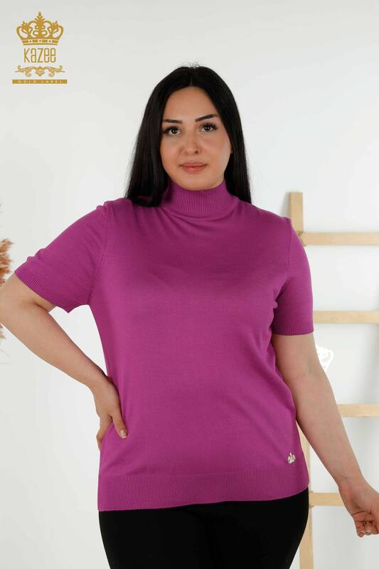 Venta al por mayor Suéter de Punto para Mujer Modelo Americano Cuello Alto Viscosa Lila - 16168 | kazee