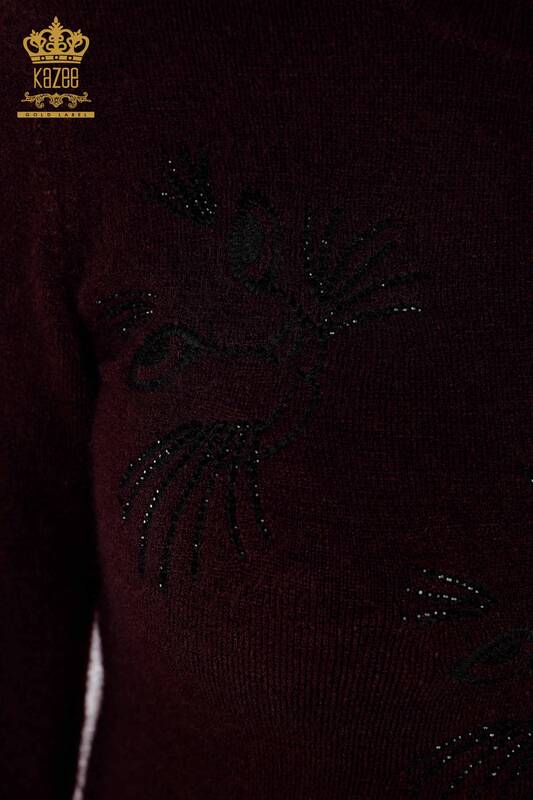 Venta al por mayor Suéter de punto para mujer con detalles de gato y piedra bordada - 18759 | kazee