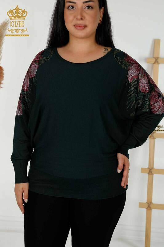Venta al por mayor Suéter de punto para mujer Flor de hombro bordada con piedra Nefti detallada - 16133 | kazee