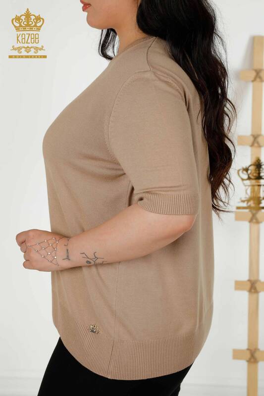 Venta al por mayor Suéter de Punto para Mujer Modelo Americano Logotipo Básico Beige - 30389 | kazee