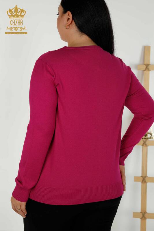 Venta al por mayor de las mujeres suéter de punto de piedra bordado floral estampado fucsia - 30156 | kazee