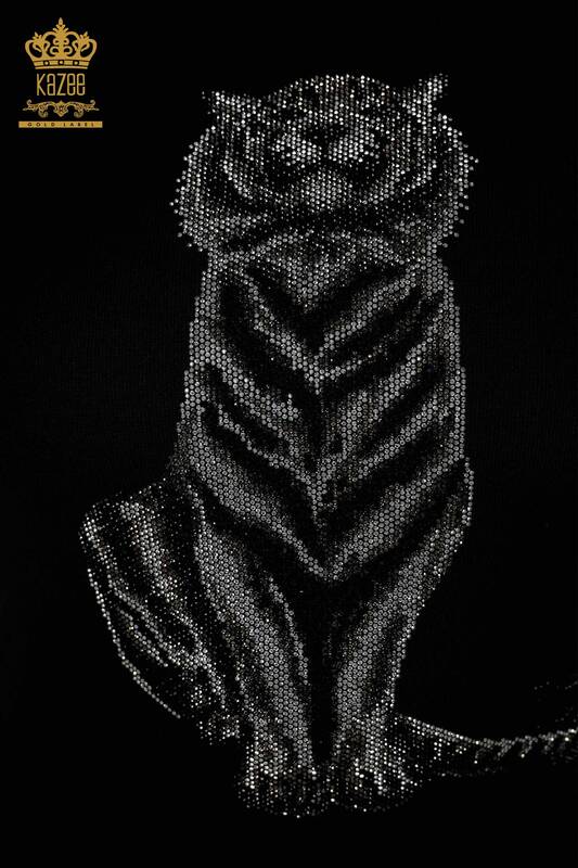 Venta al por mayor Suéter de punto para mujer con diseño de tigre y piedra bordada en negro - 30127 | kazee