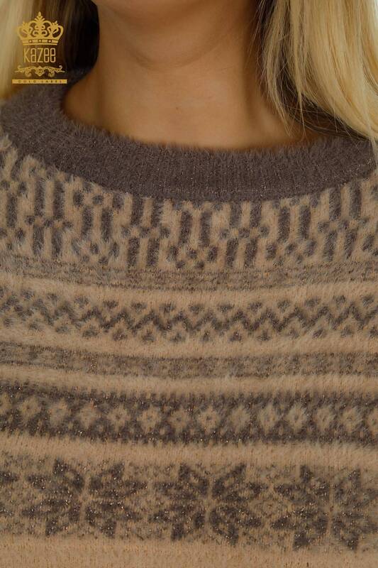 Venta al por mayor Jersey de Punto para Mujer Angora Estampado Beige - 30681 | KAZEE