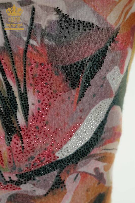 Venta al por mayor de Mujer Suéter de Punto Flor de Angora Estampado Manga Larga Piedra Bordada Digital - 40043 | KAZEE