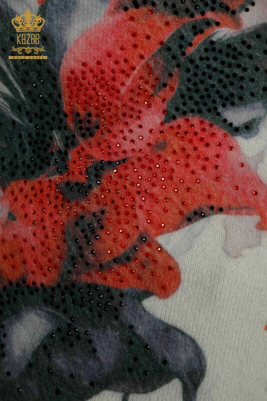 Venta al por mayor de Mujer Suéter de Punto Angora Piedra Bordada Flor Estampada Digital - 40038 | KAZEE