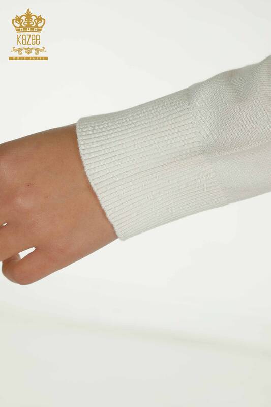 Venta al por mayor Suéter De Punto Para Mujer Con Cuentas De Piedra Bordado Cuello Alto Crudo - 30672 | KAZEE