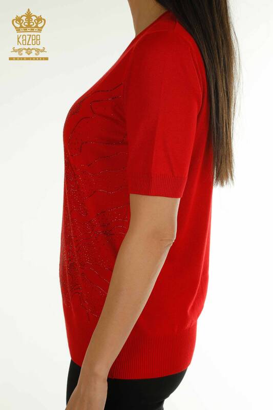 Venta al por mayor Suéter de Punto para Mujer Modelo Americano Bordado con Piedra Manga Corta Rojo - 30659 | KAZEE