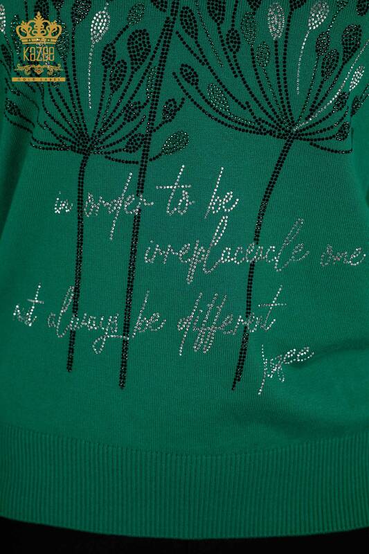 Venta al por mayor de Prendas de punto para mujer Suéter con estampado floral bordado en piedra Verde - 30156 | KAZEE