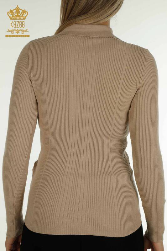 Venta al por mayor de Mujer Suéter de Punto Botón Detallado Manga Larga Básico Beige - 30364 | KAZEE