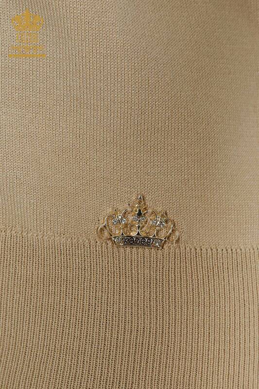 Venta al por mayor de Mujer Prendas de Punto Suéter Botón Detallado Escote en V Beige Claro - 30139 | KAZEE