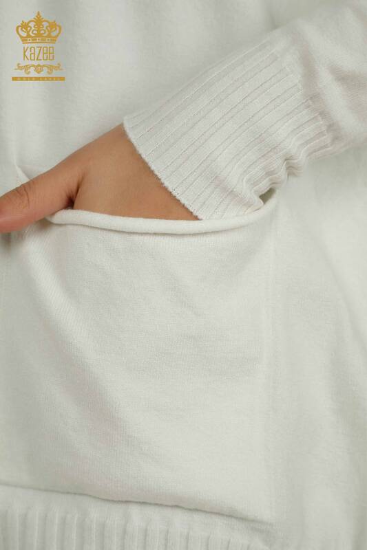 Venta al por mayor Suéter De Punto Para Mujer Botón Detallado Dos Bolsillos Crudo - 30178 | KAZEE