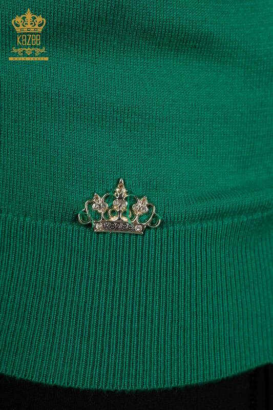 Venta al por mayor de prendas de punto para mujer Botón Detallado Cuello en V Verde - 30139 | KAZEE