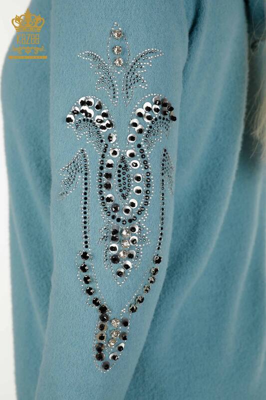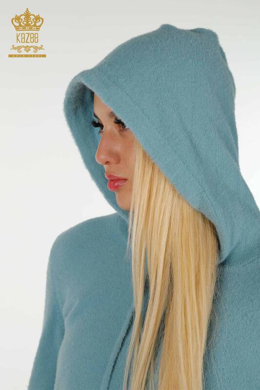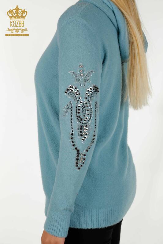 Venta al por mayor de Mujer Suéter de Punto Manga Con Capucha Detallada Piedra Bordada Menta - 40006 | KAZEE