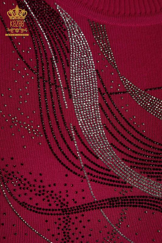 Venta al por mayor de Mujer Suéter de Punto Cristal Piedra Bordado Collar Fucsia - 30469 | KAZEE
