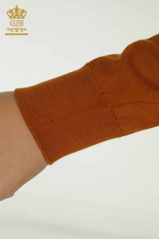 Venta al por mayor de Mujer Suéter de Punto Manga Larga Básico Logo Cuello en V Marrón - 11071 | KAZEE