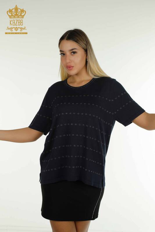 Venta al por mayor Suéter de Punto para Mujer Modelo Americano Brillo Degradado Tejido Detallado Azul Marino - 30794 | KAZEE