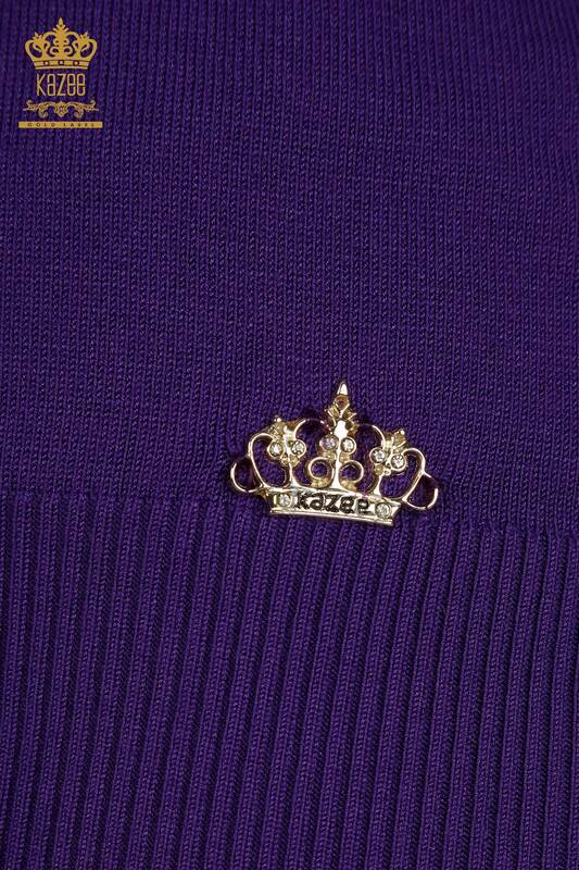 Venta al por mayor Suéter de Punto para Mujer Modelo Americano Básico con Logo Morado - 15943 | KAZEE