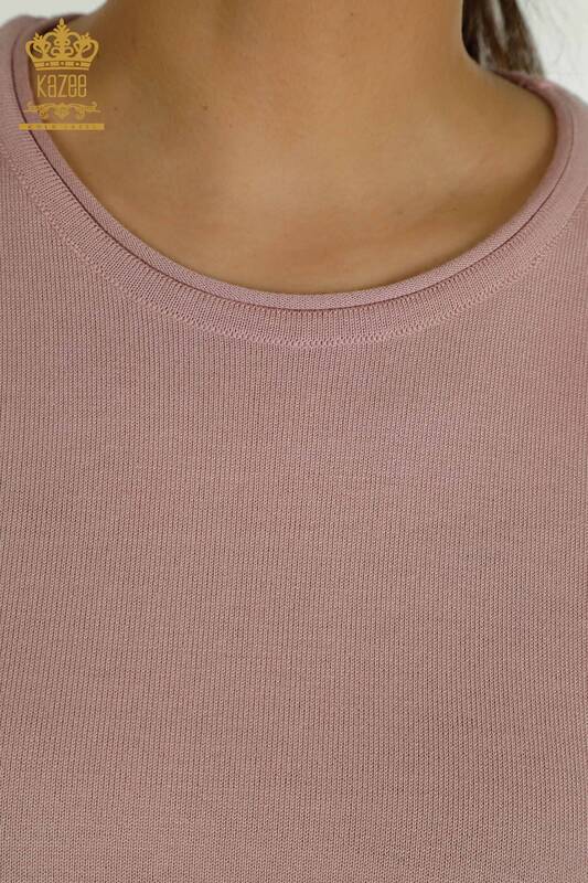 Venta al por mayor Suéter de Punto para Mujer Modelo Americano Basic Logo Powder - 15943 | KAZEE