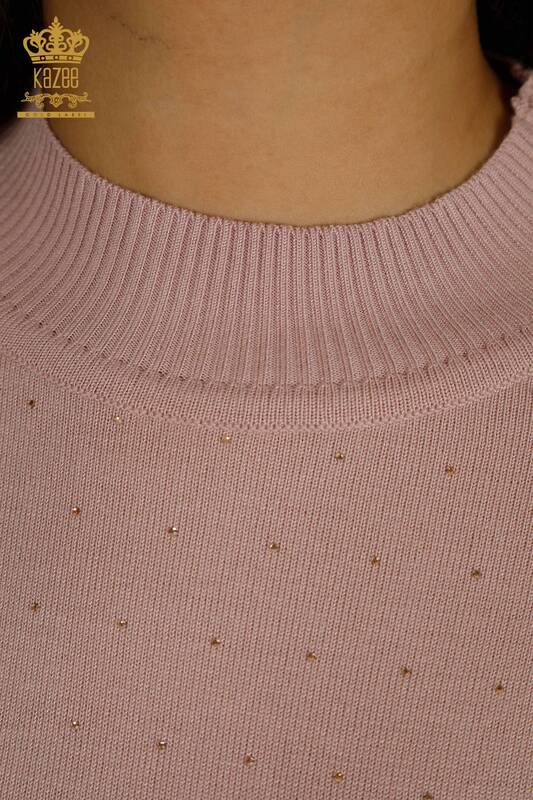 Venta al por mayor de Prendas de Punto para Mujer Suéter con Cuello Alto Bordado de Piedra en Polvo - 30677 | KAZEE