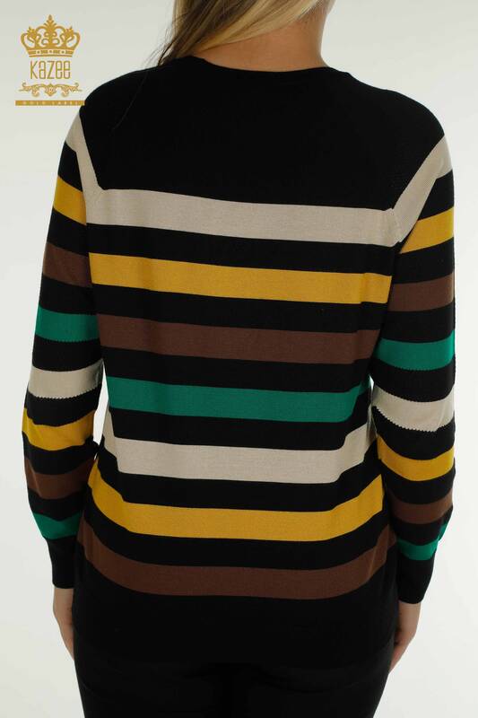 Venta al por mayor Suéter de Punto para Mujer A Rayas Bicolor Negro Azafrán - 30133 | KAZEE