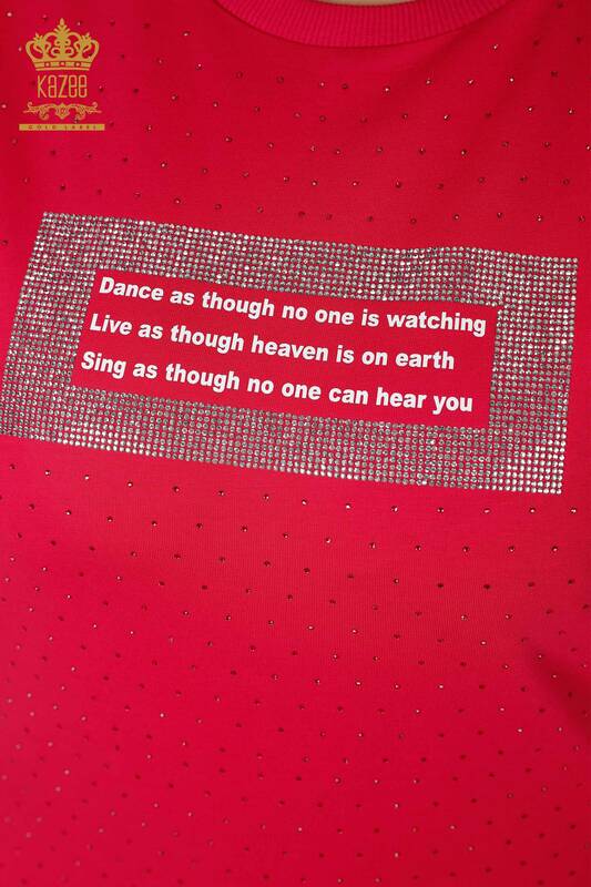 Venta al por mayor Conjunto Chándal Mujer Manga Corta Bordado Piedra Escrito Fucsia - 17389 | kazee