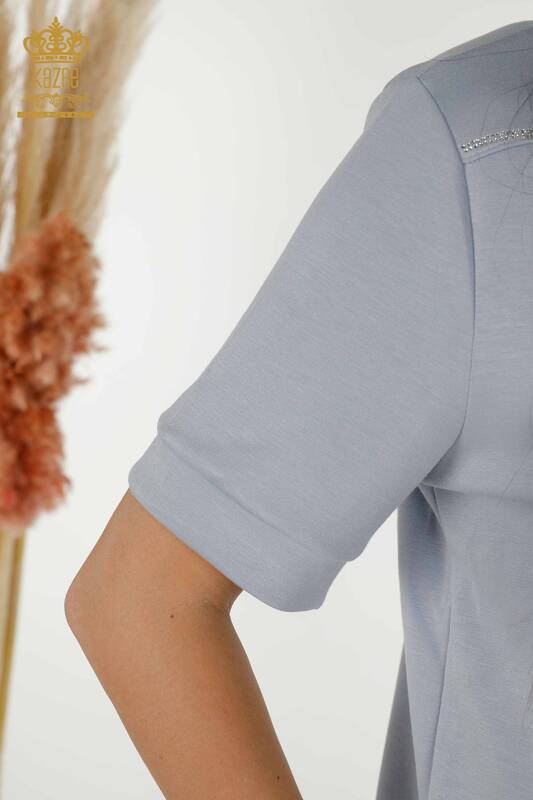 Venta al por mayor Conjunto de chándal para mujer con cremallera y bolsillo bordado con piedra azul - 17549 | kazee