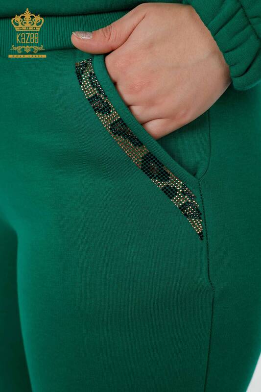 Venta al por mayor Conjunto de chándal para mujer con patrón de tigre bordado en piedra verde - 17473 | kazee