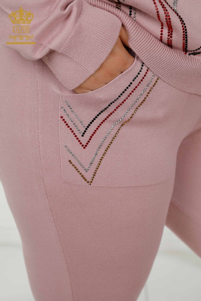 Venta al por mayor Conjunto de chándal para mujer con bordado de piedra en polvo con cremallera en el bolsillo - 16676 | kazee
