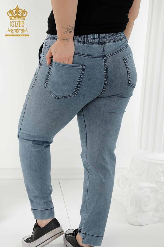 Venta al por mayor Pantalones de Mujer Con Cintura Elástica Tie Tie Pocket Azul Marino - 3676 | kazee