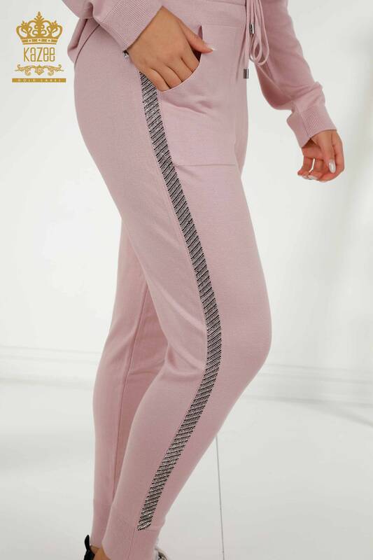 Venta al por mayor Conjunto de Chándal de Mujer con Bolsillos y Cremallera, Polvos Bordados de Piedra - 16679 | KAZEE