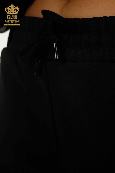 Venta al por mayor Conjunto de chándal triple para mujer Con cremallera y capucha Piedra bordada Negro - 17616 | KAZEE