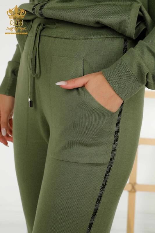 Venta al por mayor Conjunto de chándal para mujer con bolsillo con cremallera bordado en piedra color caqui - 30638 | KAZEE