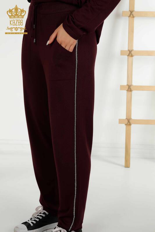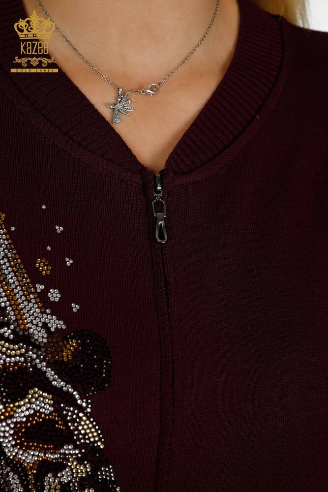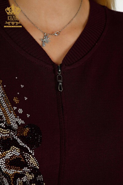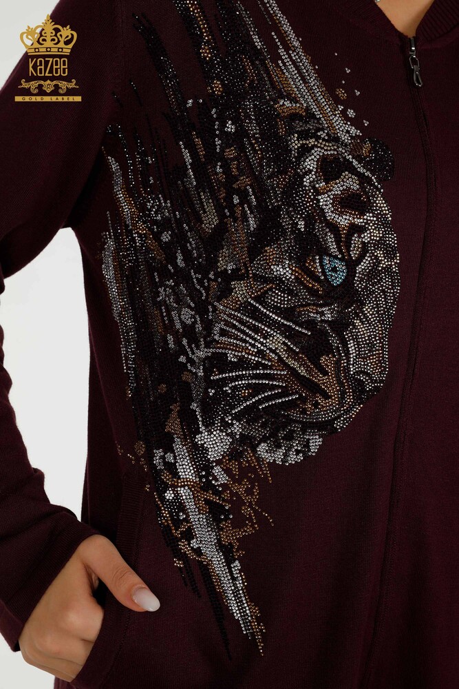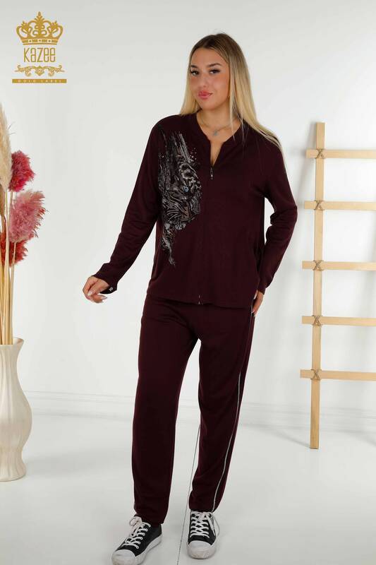 Venta al por mayor Conjunto De Chándal De Mujer Con Estampado De Leopardo Con Cremallera Piedra Bordada Ciruela - 16660 | KAZEE