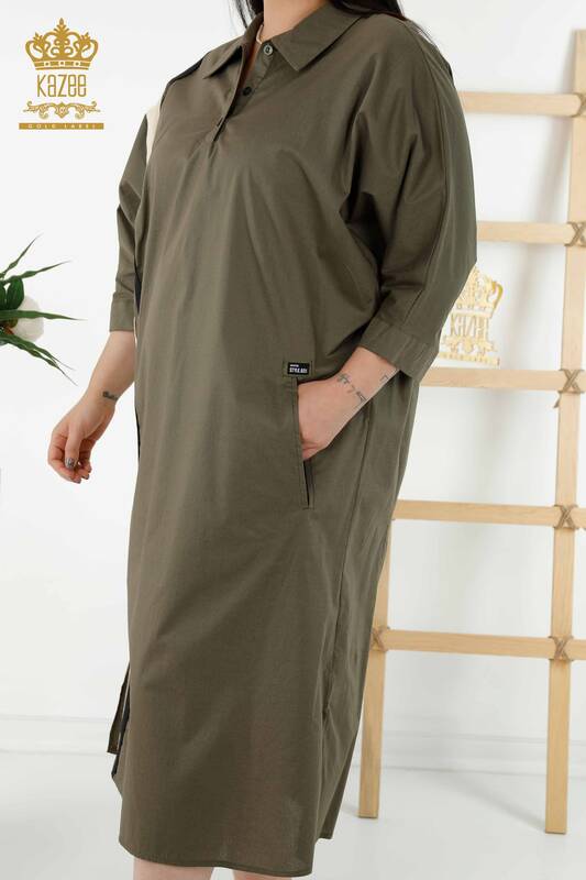 Venta al por mayor Vestido de Mujer Color Rayas Bolsillo Medio Botón Detallado Caqui - 20380 | kazee