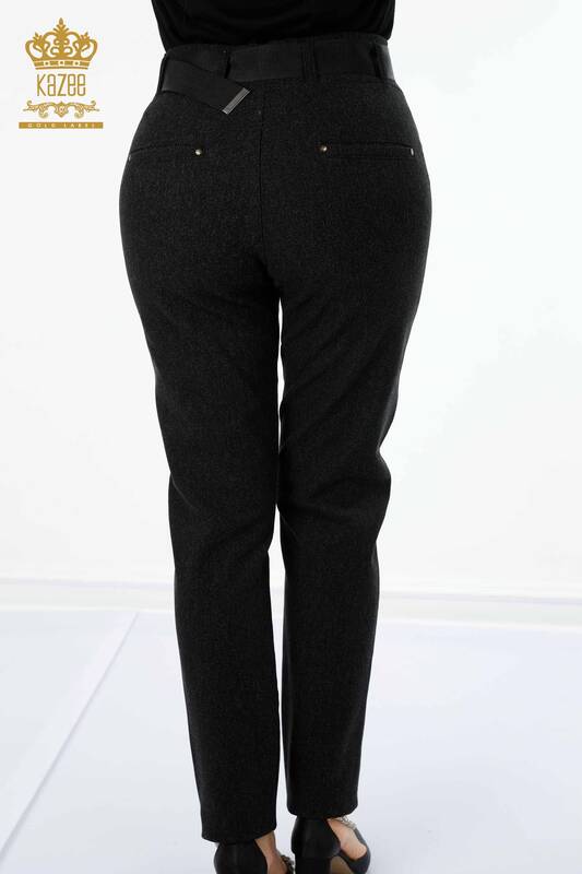 بنطلون جينز نسائي مع حزام جيب مفصل أسود - 3662 | كازي
