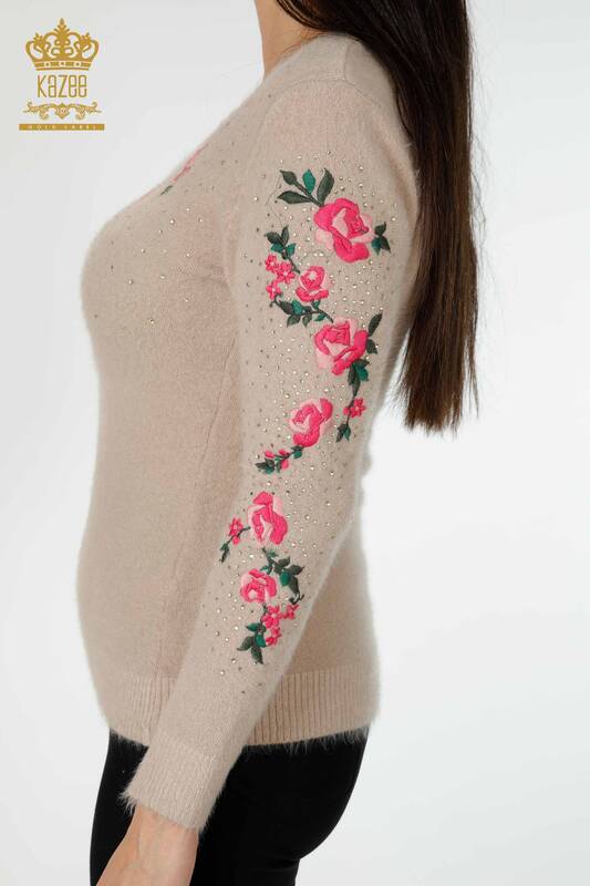 оптом женский трикотаж свитер с вышивкой камнем цветочный узор бежевый - 18916 | KAZEE