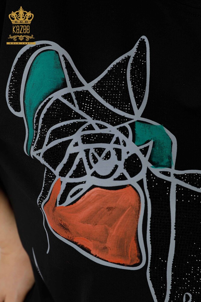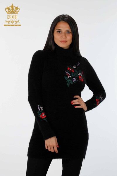 оптовая продажа женская туника с круглым вырезом узорчатая вышитая камнем черная - 17365 | КАЗЕЕ