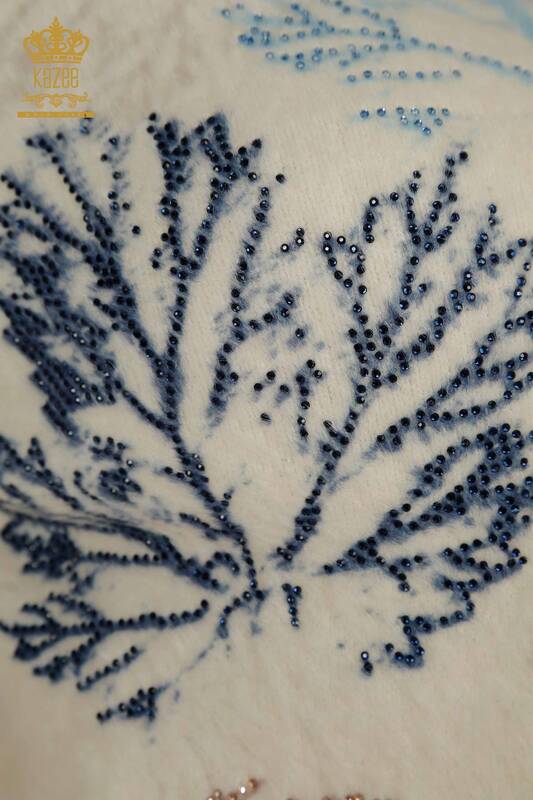 Оптовая продажа Женский ангорский трикотаж Свитер с принтом листьев и длинным рукавом с цифровой вышивкой камнями - 40015 | КАЗИ