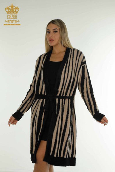 Оптовые продажи Женский кардиган двух цветов из ангорской нити с завязками цвета экрю - 30312 | КАЗИ