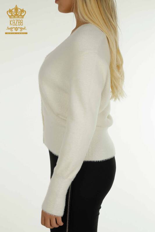 Женский кардиган из ангоры на пуговицах оптом, цвета экрю - 30447 | КАЗИ