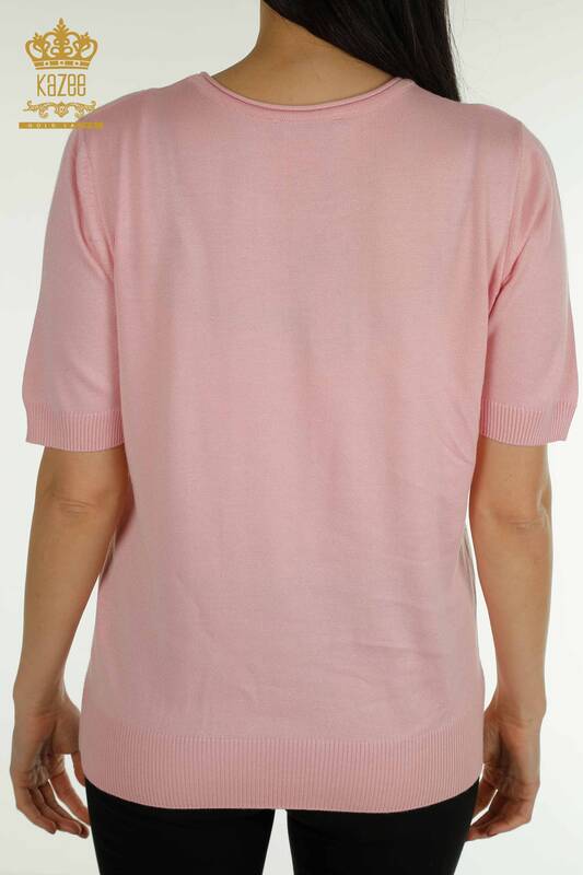 Оптовая продажа женского трикотажного свитера Американская модель с каменной вышивкой Розовый - 30686 | КАЗИ