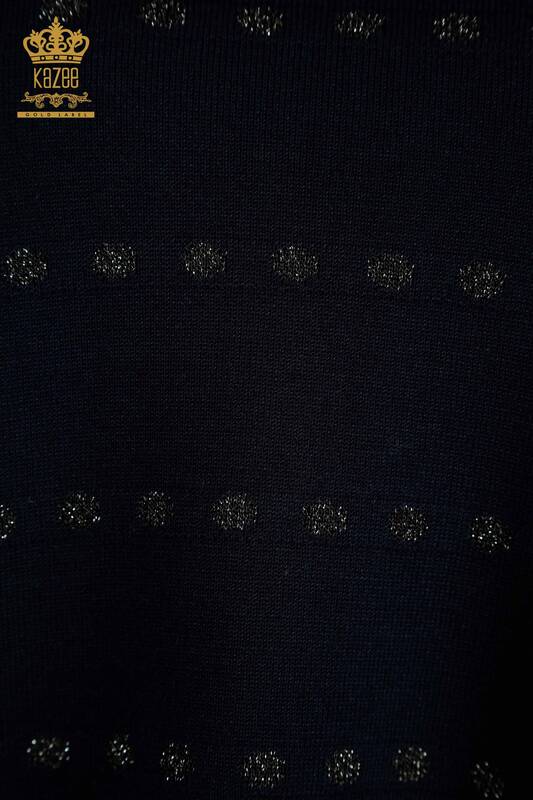 Оптовая продажа женского трикотажного свитера американской модели с блестками и градиентной тканой отделкой темно-синего цвета - 30794 | КАЗИ