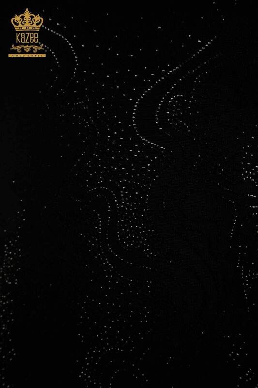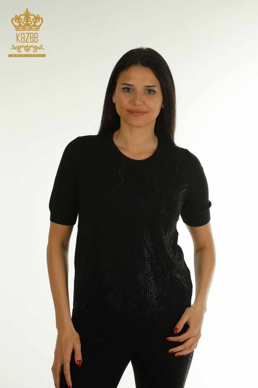 Оптовая продажа женского трикотажа Свитер с каменной вышивкой Американская модель с коротким рукавом Черный - 30659 | КАЗИ
