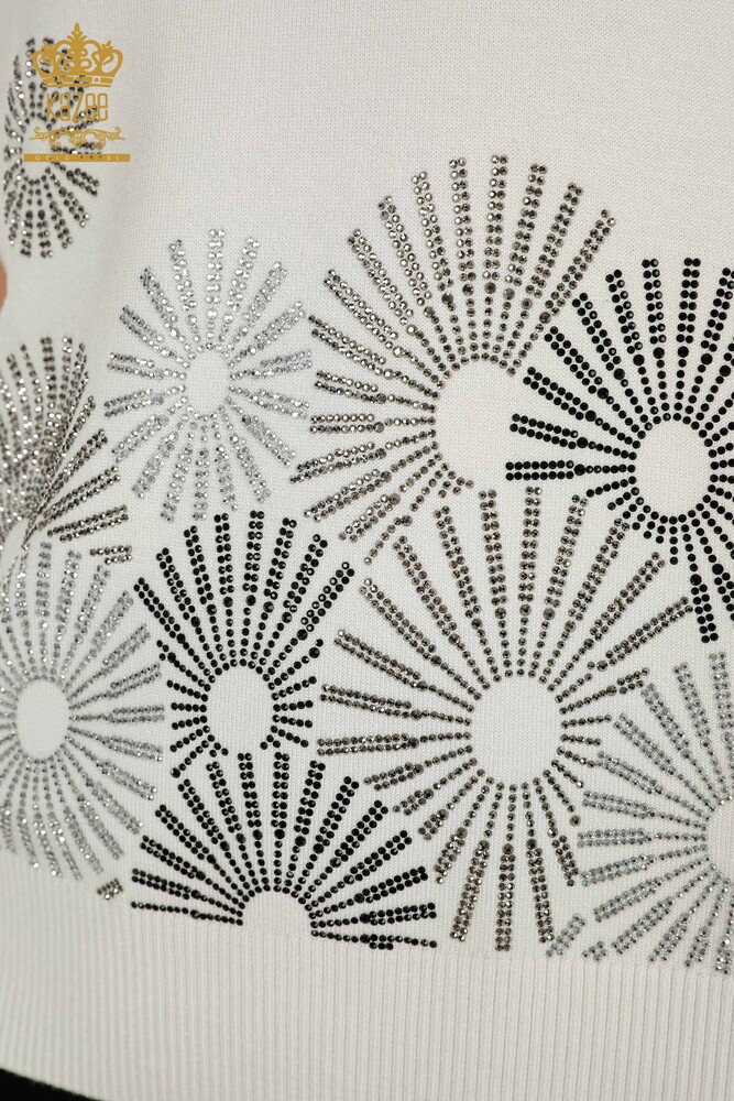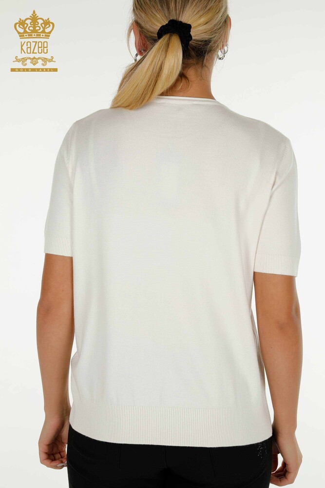 Оптовая продажа женского трикотажного свитера с каменной вышивкой и коротким рукавом цвета экрю - 30318 | КАЗИ