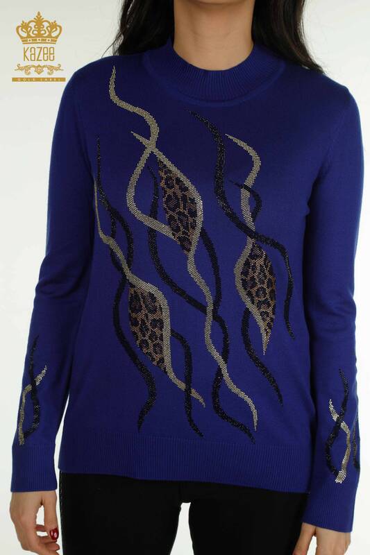 Оптовые женские трикотажные свитера Сакс с длинными рукавами и вышивкой камнями - 30096 | КАЗИ